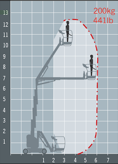 • 12.4m working height with a compact 1.2m width – fits through standard doors.