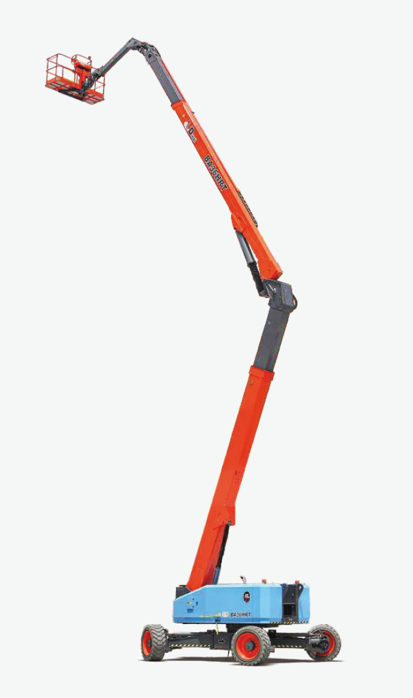Dingli BA36HRT is a 36.2m hybrid articulated boom lift designed for high-reach work on rough or uneven terrain. It combines a lithium battery system with a diesel range-extender engine, offering flexible use both indoors and outdoors.